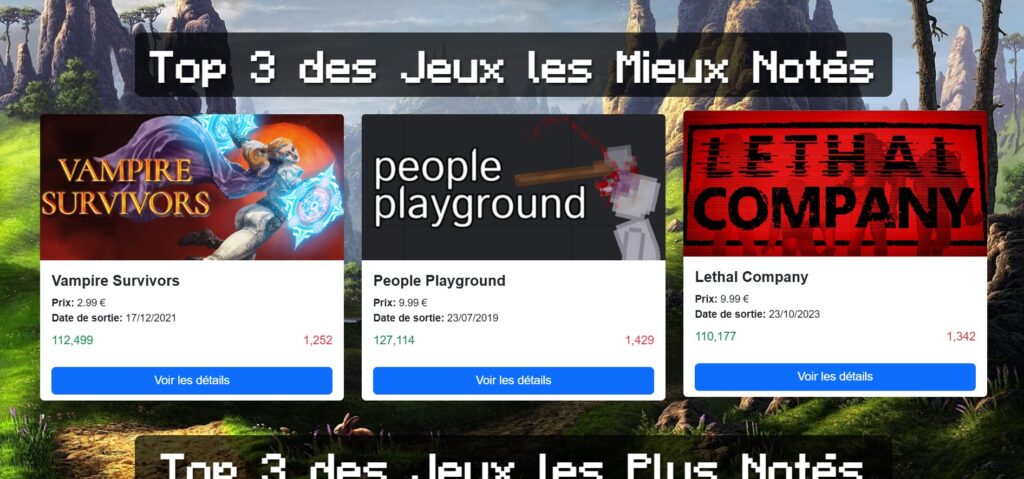 J’ai participé à un projet visant à prédire le succès commercial d’un jeu vidéo en analysant différents critères comme le genre, l’éditeur, le studio de développement ou encore les tendances du marché. Après avoir mis en place un environnement de développement avec Docker, nous avons choisi de simplifier notre architecture initiale en remplaçant Symfony par du PHP classique pour le front-end. J’ai développé cette partie aux côtés d’un autre membre de l’équipe, tandis qu’un troisième s’est chargé de l’API en Node.js. Ensemble, nous avons mis en place un système complet incluant l’authentification, la récupération des données et leur affichage dynamique. Ce projet m’a permis de renforcer mes compétences en travail d’équipe, en structuration de projet web et en analyse de données appliquée.